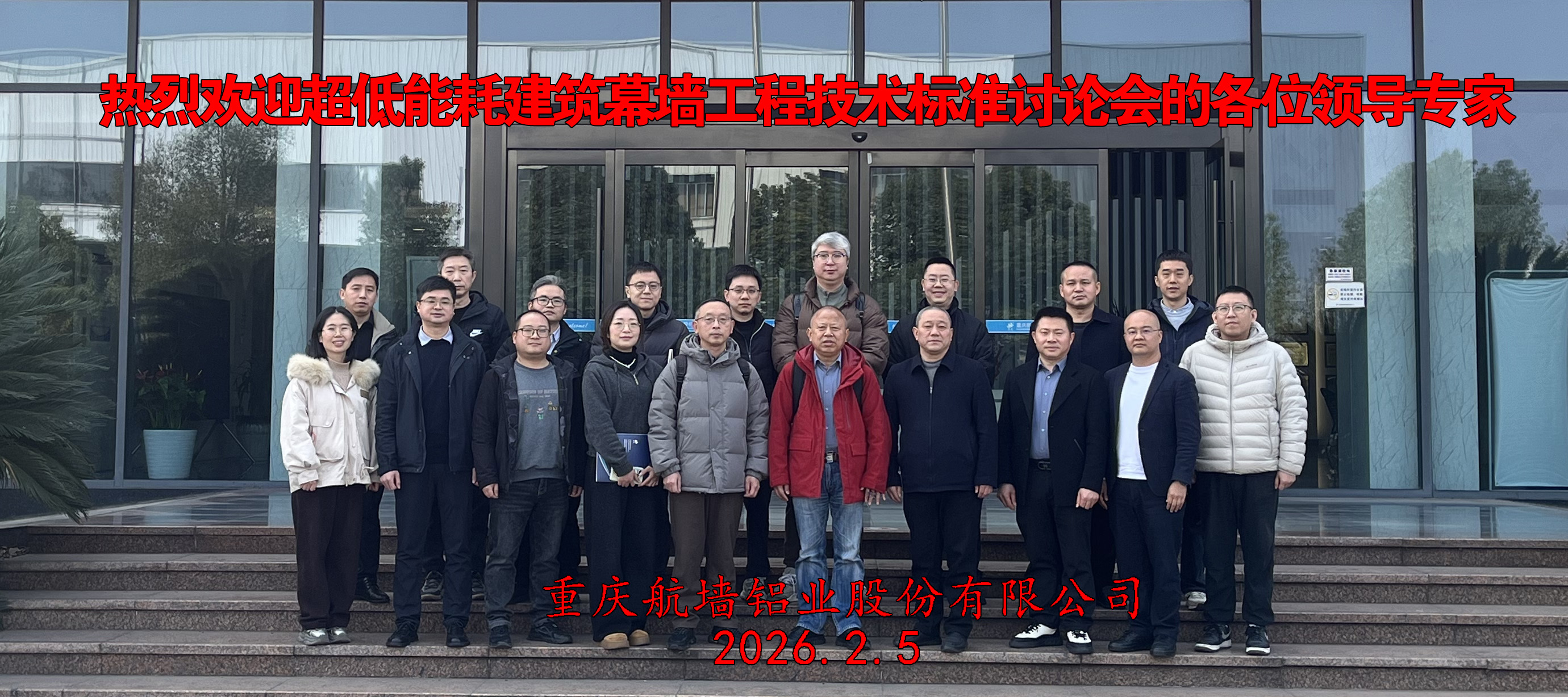 超低能耗建筑幕墻工程技術(shù)標準討論會在航墻鋁業(yè)召開2026年2月5日,重慶市地方標準《超低能耗建筑幕墻工程技術(shù)標準》討論會在重慶航墻鋁業(yè)股份有限公司順利召開。本次會議緊扣建筑領(lǐng)域碳達峰、碳中和戰(zhàn)略目標,聚焦超低能耗建筑幕墻工程的技術(shù)規(guī)范、質(zhì)量管控及產(chǎn)業(yè)適配等核心議題,旨在完善重慶市超低能耗建筑標準體系,推動幕墻工程技術(shù)升級與綠色低碳轉(zhuǎn)型。本次會議得到行業(yè)各界高度重視,邀請了中國煤科院、四川省建筑設(shè)計
