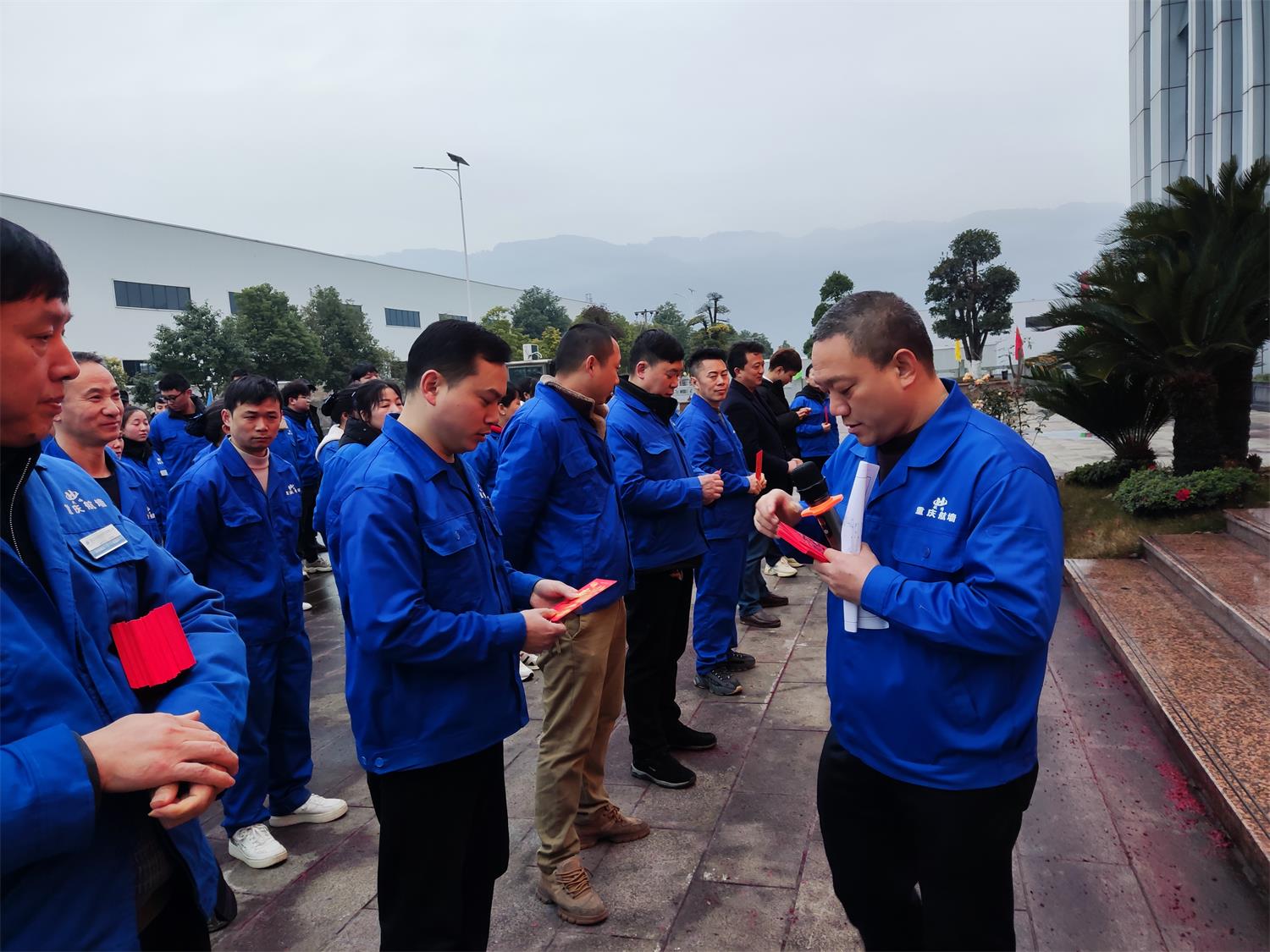 在開工典禮上,公司董事長向每個員工發放了開工紅包并為工友們送上了最溫馨的祝福。全體員工以飽滿的熱情,意氣風發迎接新一年的生產、工作任務,決心在2022年里,團結一心,再創佳績。