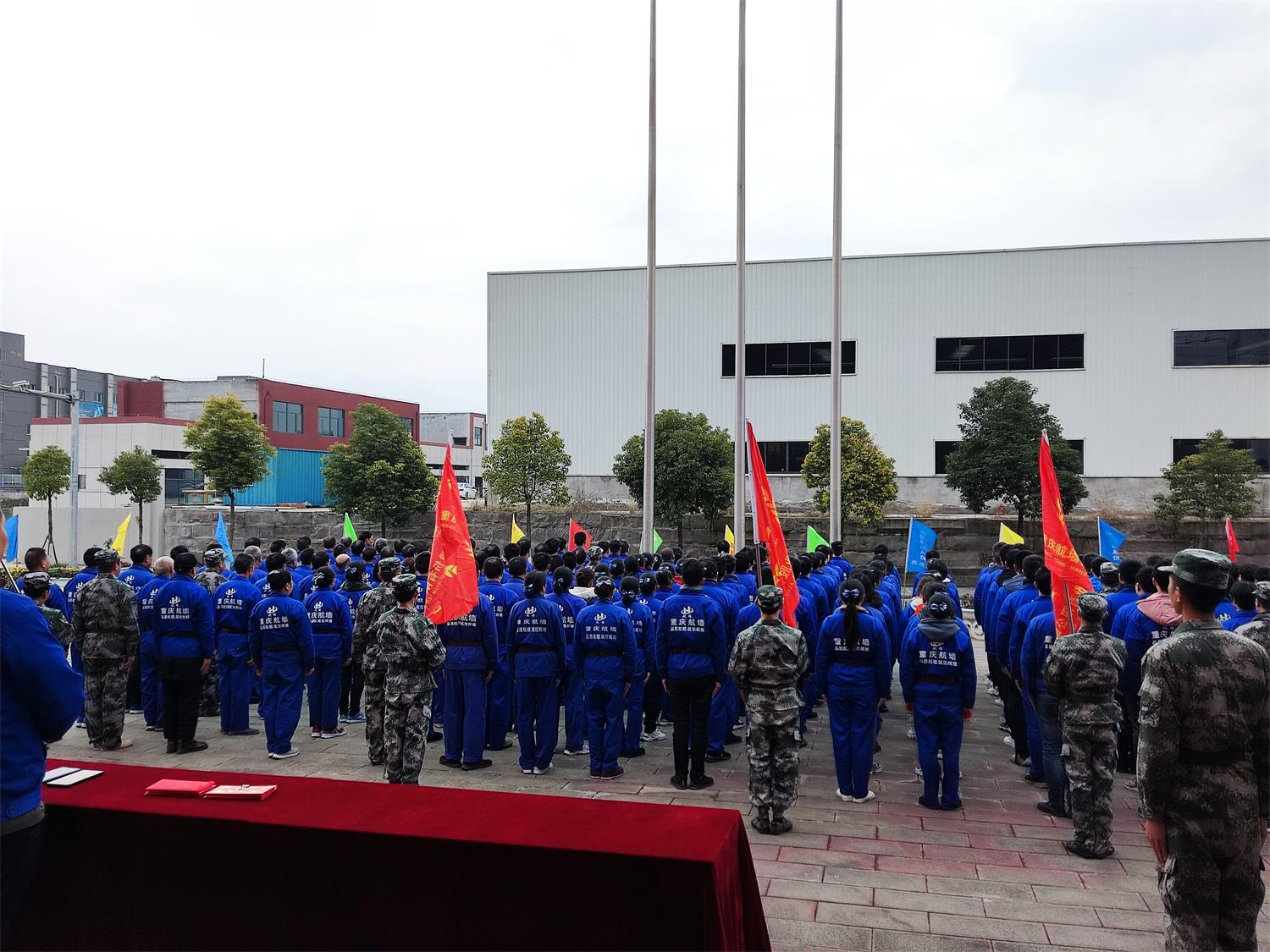 當日上午9:00時,公司全體員工220人,按年齡分成4個隊開展了為期一天的軍訓、命名“航墻鐵軍”。