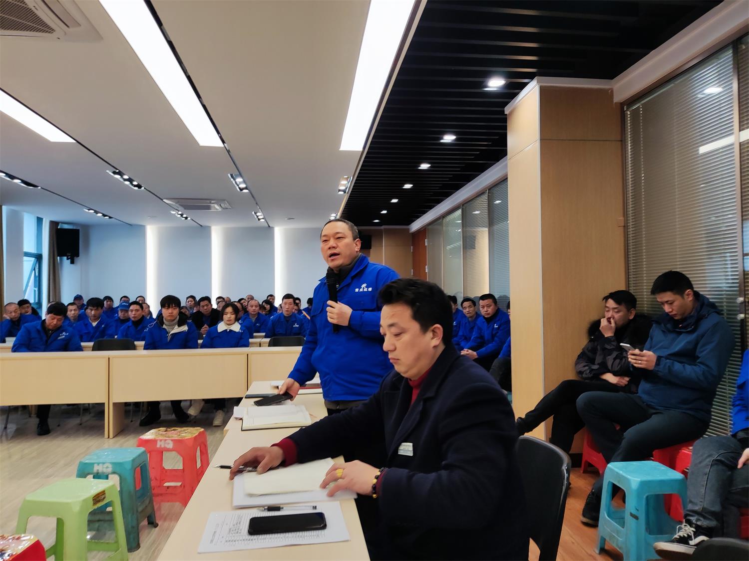 2月12號上午,公司班組長及以上干部進行了述職報告,找差距,添措施,講2021年已經做的,說2022年需要改進的。