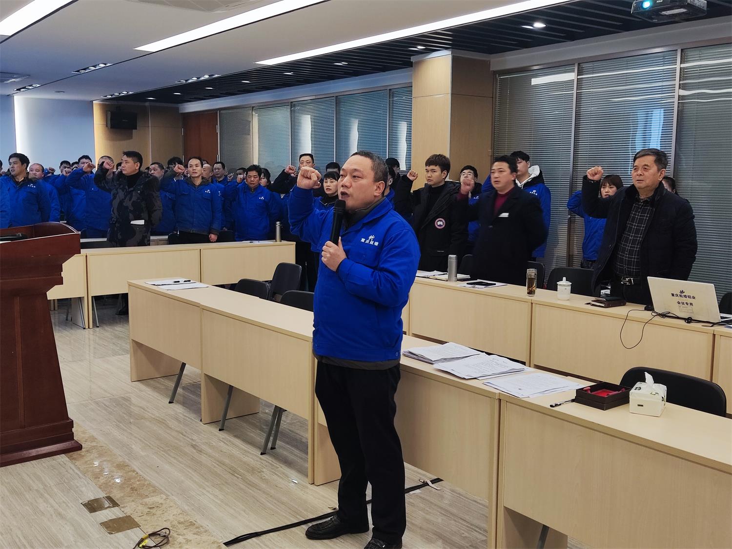 最后,董事長帶領全體干部員工進行了宣誓,決心在新一年里,精誠團結,攜手共進,不辱使命,一路前行!