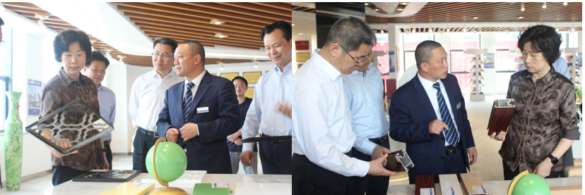 來到公司展廳,董事長為領(lǐng)導(dǎo)們介紹了公司的發(fā)展情況,組織架構(gòu),產(chǎn)品用途、性能、工藝、以及與傳統(tǒng)裝飾材料比較的優(yōu)勢和工程案例,張軒主任對產(chǎn)品非常感興趣。