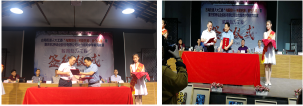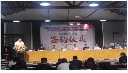 6月18日,在古南街道人大工委“與愛同行﹒關愛貧困、留守兒童”暨重慶航墻鋁業股份有限公司助力城南中學教育發展教育助力工程簽約儀式上,重慶航墻鋁業股份公司助力綦江城南中學教育發展正式簽約,董事長藺勇榮幸受聘綦江城南中學“名譽校長”職務。