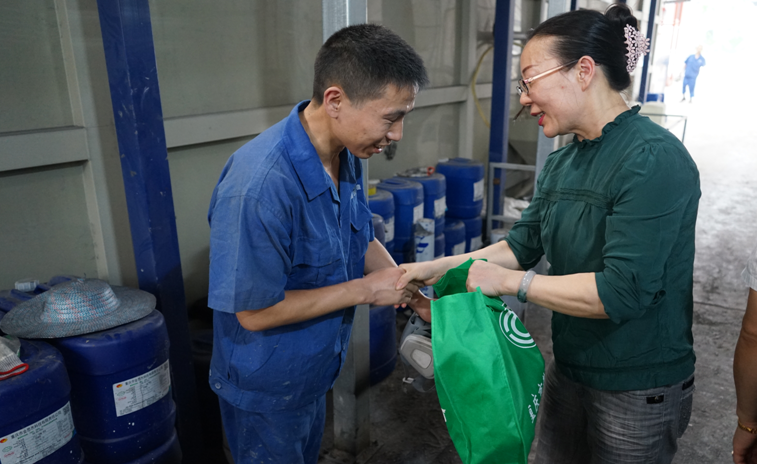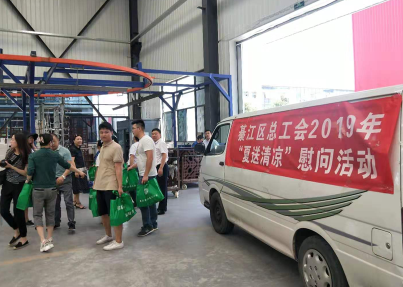 職工們激動(dòng)地說(shuō):總工會(huì)真好!總工會(huì)的領(lǐng)導(dǎo)真好!噴房里溫度那么高,沒(méi)想到領(lǐng)導(dǎo)們把禮物送到里面來(lái)看我們,真的太感謝了!包裝組的姐妹們拿到禮物,開(kāi)心的笑著,談?wù)撝?ldquo;工會(huì)是我們的娘家人,今天娘家人來(lái)看我們啦,還給我們送來(lái)了西瓜、綠豆、冰糖、防暑藥品,我們好幸福哦!”