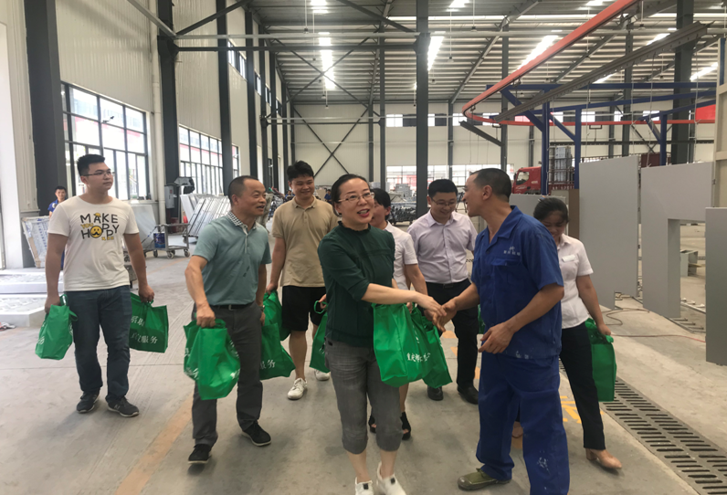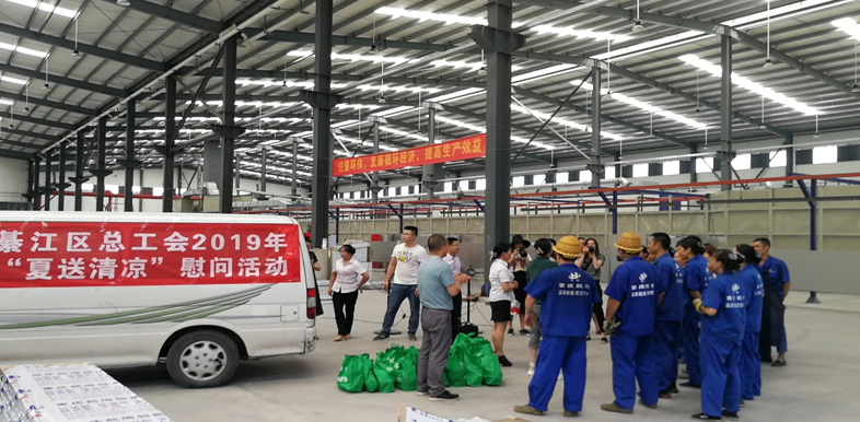 8月13日14:30時(shí)左右,一輛標(biāo)有“綦江區(qū)總工會(huì)2019年‘夏送清涼’的車(chē)”緩緩駛進(jìn)航墻鋁業(yè)生產(chǎn)車(chē)間,綦江區(qū)人大副主任、綦江區(qū)總工會(huì)主席劉洪兵,綦江區(qū)總工會(huì)黨組書(shū)記、副主席梁曉春,副主席劉世平,副主席朱澤東等領(lǐng)導(dǎo),頂烈熱、冒酷暑來(lái)到車(chē)間慰問(wèn)生產(chǎn)一線職工。